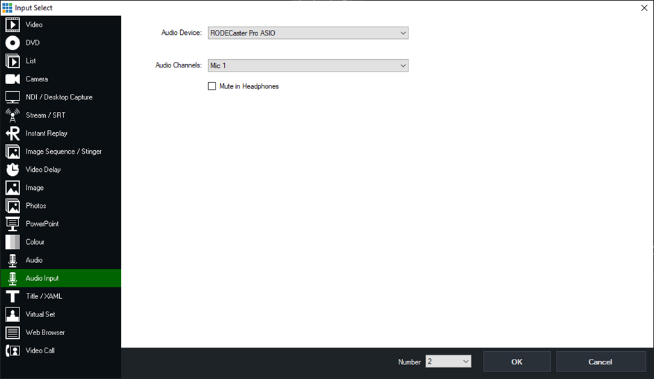- Add your RODECaster Pro input channels (microphones, sound effects, etc) into vMix individually