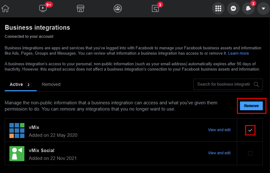 Resetting Facebook Login for vMix Live Streaming